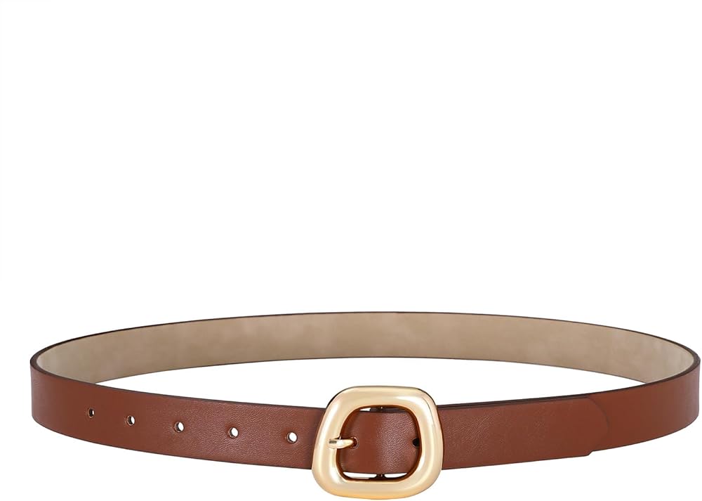 IDUNNVERVE leather belts for women are crafted for daily outfits that need reliable shape, adjustable comfort, and clean styling. This womens leather belt uses smooth faux leather, stable stitching, and flexible sizing to fit jeans, dress pants, trousers, shorts, and casual wear. A refined simple gold buckle creates a polished waistline for work, office, travel, and weekend outfits. The strap design supports repeated use as a jeans belt, dress belt, or ladies waist belt for pants, offering durability without bulk. Brown tones match tees, sweaters, blazers, and coats for effortless styling. Designed for flattering fit, this belt transitions from business looks to everyday fashion. Ideal for women seeking classic, minimalist accessories that stay neat and secure throughout the day. A practical wardrobe essential for teens, professionals, and moms who prefer timeless belts, adjustable profiles, and versatile colors suitable for all-season use
