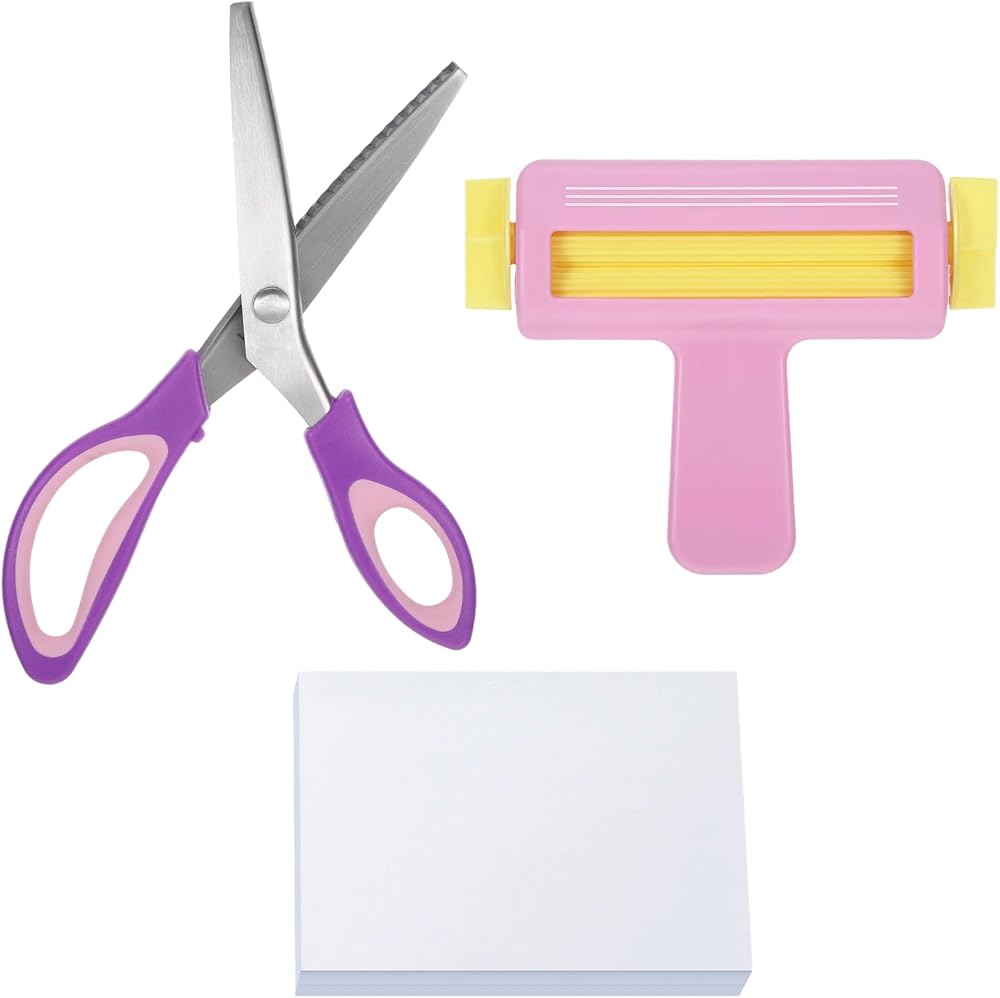 Includes 1 pink paper crimper + 1 purple pinking shears + 100 glossy sheets—everything needed for chip bags, cards, and scrapbooks!
