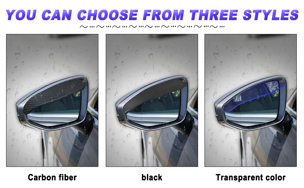 You Will Get--The package includes 2 pcs car rear view mirror rain covers. The transparent black adds a fashion sense, streamlined look to your vehicle's profile, make your car more attractive.