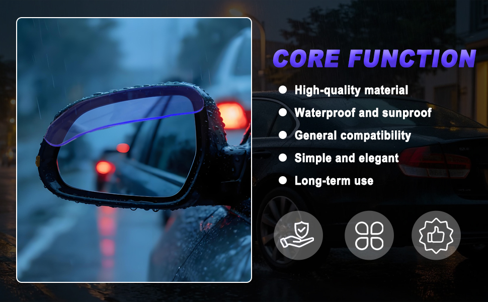 Easy to Drive in Rain--Small items have a great effect, car rearview mirror rain cover can prevent your rearview mirror from blurring when it rains or heavy snow, provide a clear vision and improve the safety of driving on rainy days.