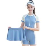 GIRLS SWIMSUITS: The short sleeve rashguard with a half-length zip closure at the front, makes taking it on and off incredibly easy, even when wet! Snug fit with colorblock rash guard shirt and beach shorts.