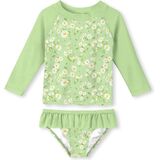 UPF 50+ : This girls two-piece rash guard swimsuit will keep your little girl's delicate skin safe in the sun! Perfect for the beach, lake, or pool!