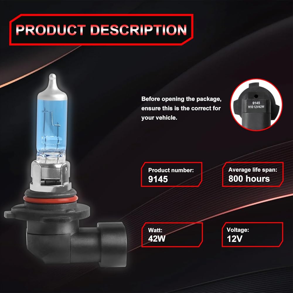 【High-Output 100W Halogen Bulbs】Designed with up to 100W power output, these halogen bulbs deliver significantly brighter illumination compared to common 55W–65W OEM halogen bulbs. Ideal for drivers who want improved nighttime visibility without switching to HID or LED conversions.