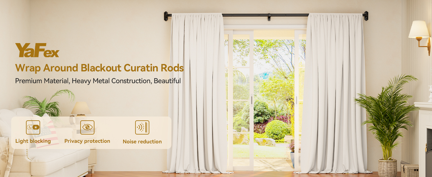 YaFex Wrap Around Blackout Curtain Rods: 48-86 Inch 1 Inch Heavy Duty Curtain Rods for Windows French Return Curtain Rod for Room Darkening in Bedroom and Living Room Easy to Install