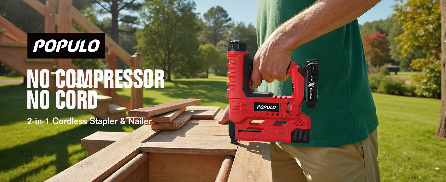 POPULO 20V Nail Gun Battery Powered, 18 Gauge 2 In 1 Cordless Brad Nailer Stapler for Carpentry and Upholstery, Electric Staple Gun Includes a 2.0Ah Battery, Charger, 1600 Pcs Staples and Nails