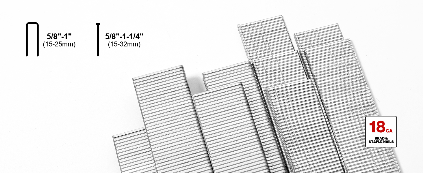Upgraded Motor & Precision Applications: This cordless brad nailer features advanced impact technology, delivering consistent firing power for DIY woodworking and home improvement. It is the ideal battery brad nailer for delicate projects like picture frame assembly, birdhouse building, furniture repair, and securing cabinet backing. Specifically designed for 18-gauge brad nails (5/8" to 1-1/4") and 1/4" crown staples, it ensures a clean, professional finish without damaging small workpieces