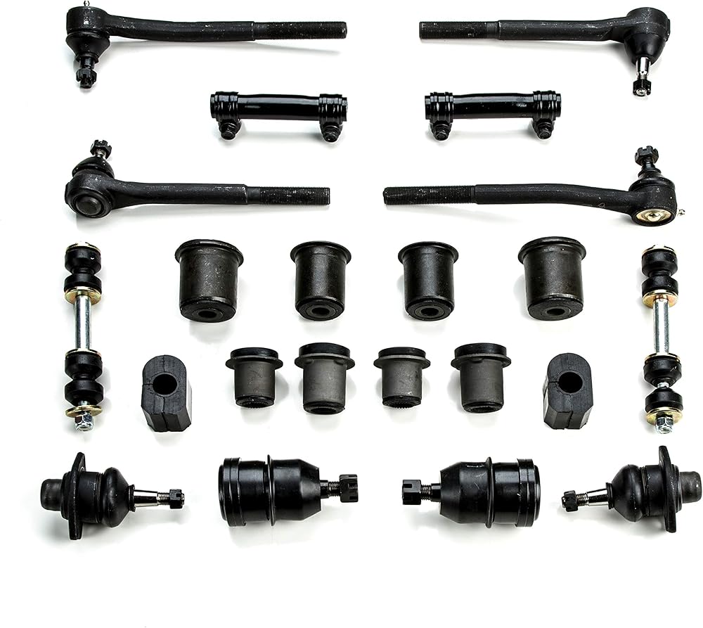 This Kit is constructed using High-Quality OEM spec replacements for 1975-1979 Chevrolet Chevy II and Novas. These parts are Factory Design and will only work with Stock Vehicles. This Kit Contains All Of The Pieces Below: Inner Tie Rod Ends (Right and Left), Outer Tie Rod Ends (Right and Left), Tie Rod Sleeves (2 Each), Sway Bar Links (2 Each), Sway Bar Bushings (2 Each), Upper Ball Joints (2 Each), Lower Ball Joints (2 Each), Upper Control Arm Bushings (4 Each), and Lower Control Arm Bushings (4 Each). This Kit Also Contains The Cotter Pins, Rubber Grease Seals/boots, Zirc Fittings (When Applicable), And The Bolts For The Ball Joints, Plus The Tie Rod Sleeve Bolts, Nuts, And Clamps.