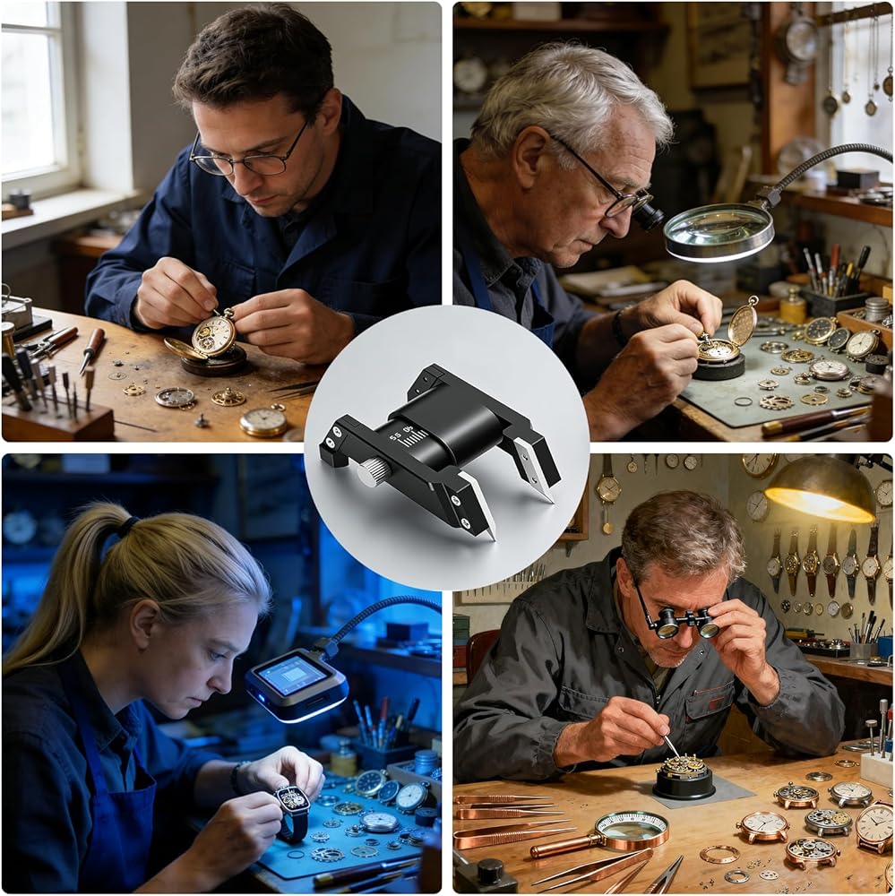 • Professional Experience:Engineered with high-strength materials and ergonomic contours, this tool offers the stability and grip expected from premium watchmaker tools. The dual-side clamp design distributes pressure evenly, reducing the risk of scratches or misalignment. Whether you're resizing a metal bracelet, swapping straps or performing detailed maintenance, this tool provides consistent control and confidence, even for beginners