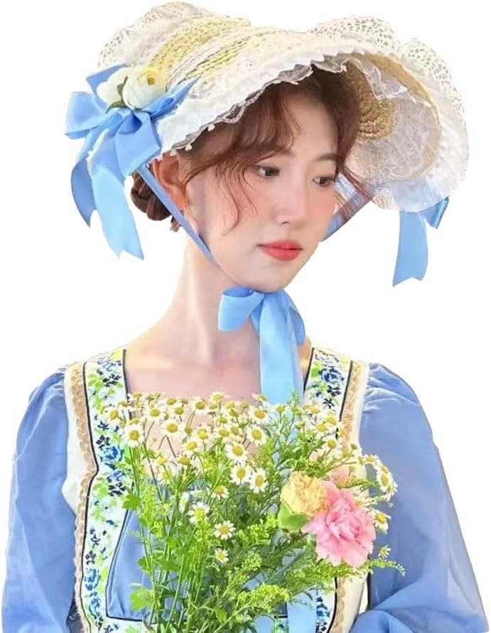 The adjustable chin strap keeps the hat securely in place on windy days. Summer hats for women 2025, can be used as a vacation hat. Classic retro style, fashionable design, delicate workmanship, elegant shallow crown with a unique look. Helps shield your head, face and neck from the sun, making it a nice graceful accessory for most women and ladies. You can match it with your summer vintage dress, Lolita dress, or 1800s Victorian dress.