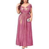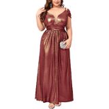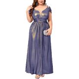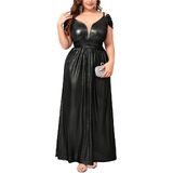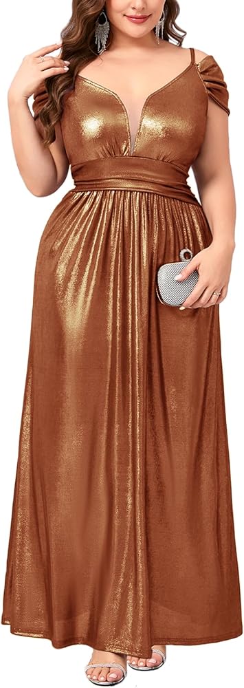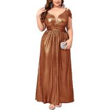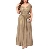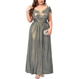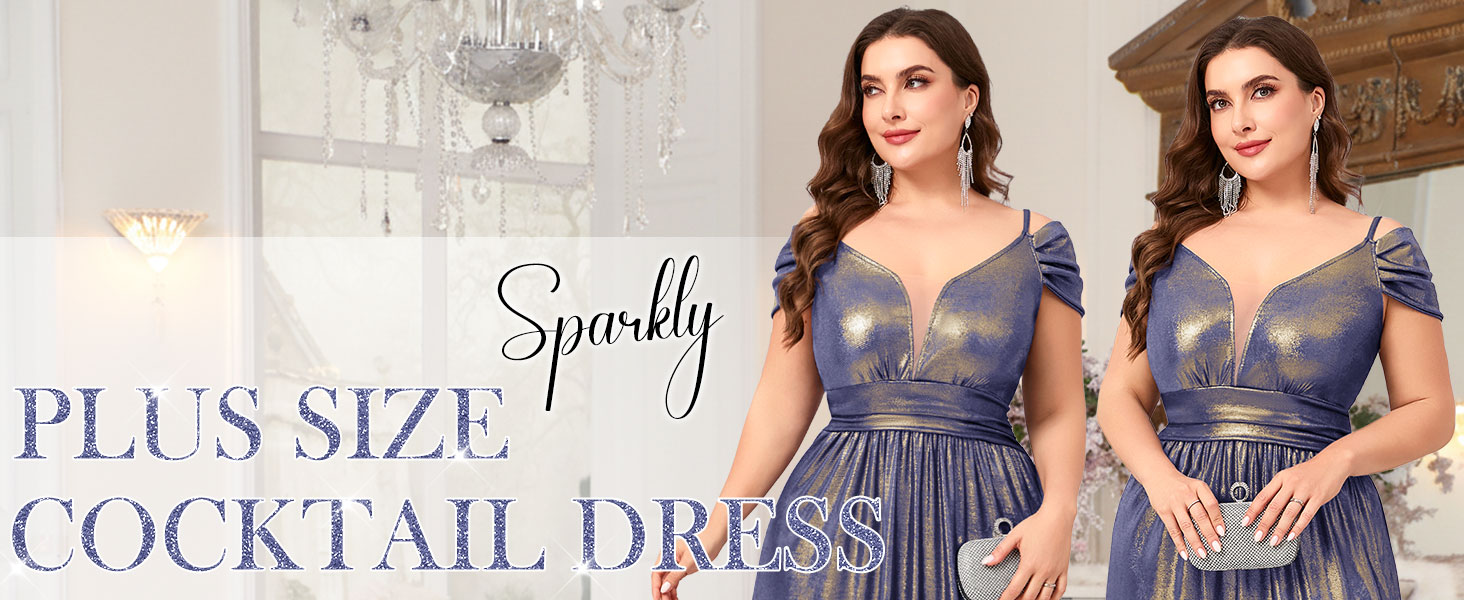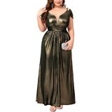 Premium Shimmer Fabric: This plus size gown is crafted from stretchy fabric designed for both comfort and visual impact. The base color is infused with delicate golden glitter accents that create a sophisticated "shimmering" effect under any light. The high elasticity ensures a flexible fit that moves with your body, making it perfect for dancing and all-night wear.
