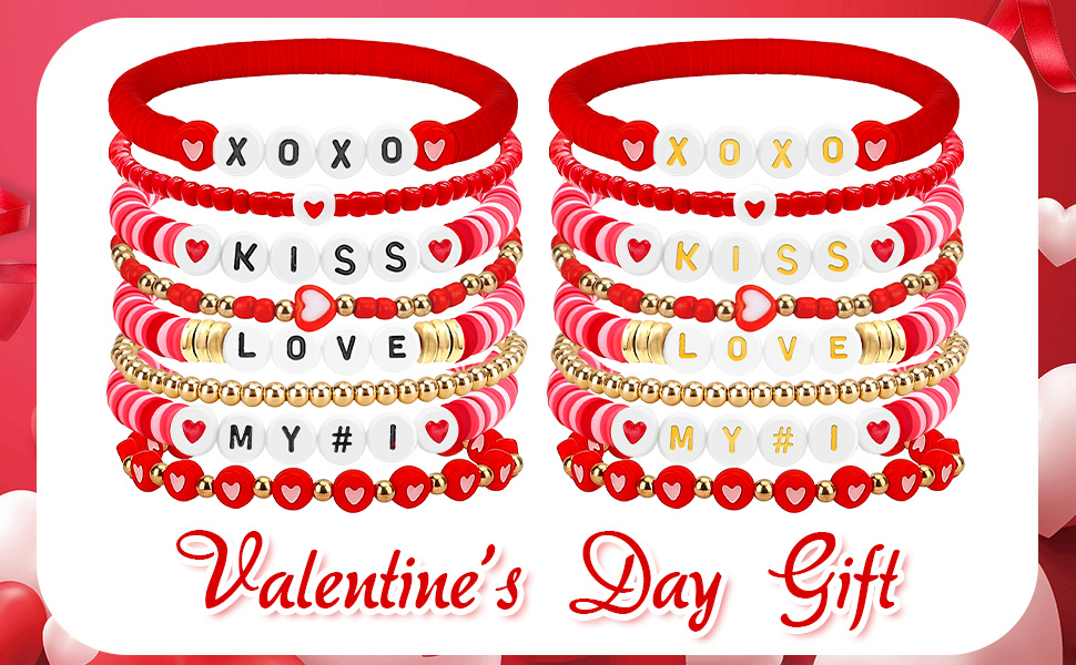 【Versatile Valentine's Day Accessories】The layered design allows you to stack 7 bracelets for trendy flair or mix and match freely to express your personality.Radiate vibrant Valentine's charm,perfect for sharing with your beloved.Use as:valentine gifts for women,valentines day gifts for girlfriend,valentines for her,lesbian valentines day gifts,girls valentines gifts,teen valentines gifts,valentines day decorations for party,valentines day gifts for girls,best friend valentine gifts.