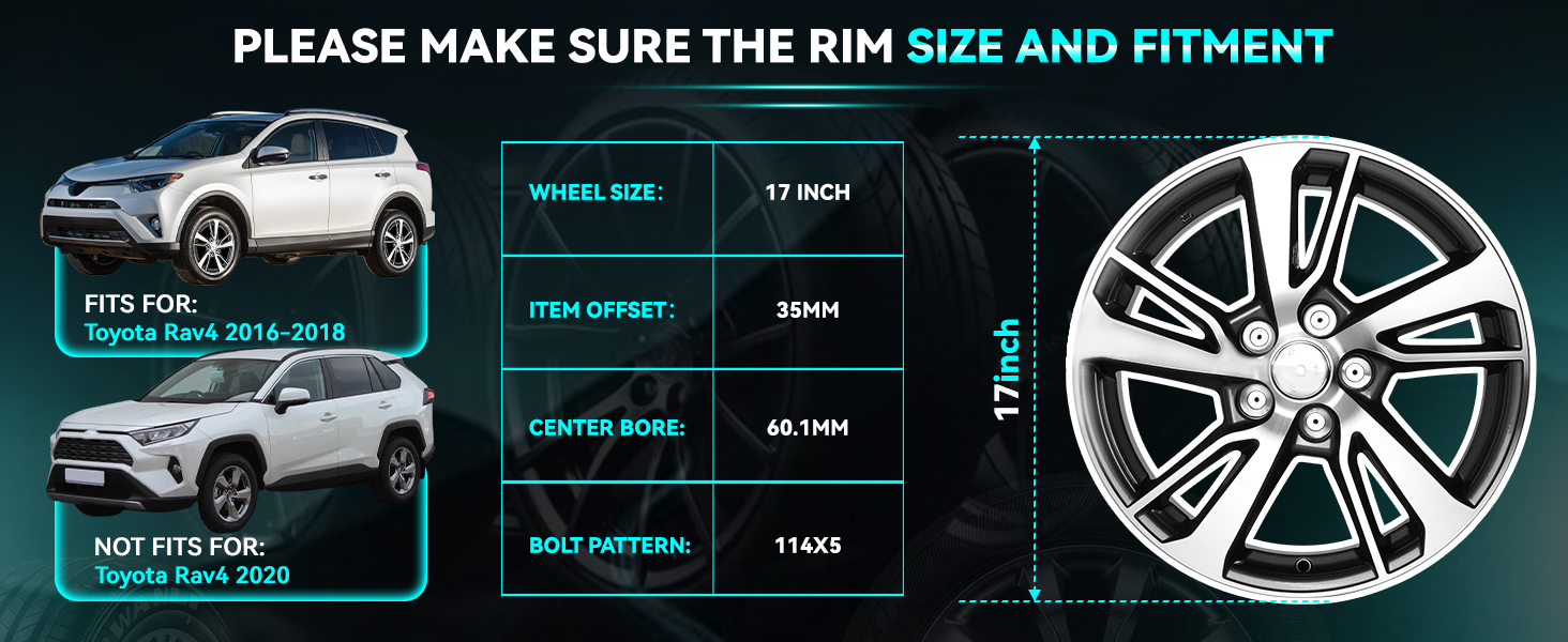 Fitment: The 18inch replacement aluminum wheel rim is made specifically to fit for Toyota Rav4 2016 2017 2018. Compare to Original Factory Part Number: 42611-0R170, 560-75198, 426110R170, 4261142660, 426110R190.