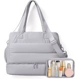 【Shoe compartment and toiletry bag】The bottom of the duffle Bag features a separate shoe compartment for easy storage of shoes after workouts. It also includes a transparent toiletry pouch for effortless organization and storage of toiletries or cosmetics.Toiletry bag size 10.2“*2.2”*7.08“.