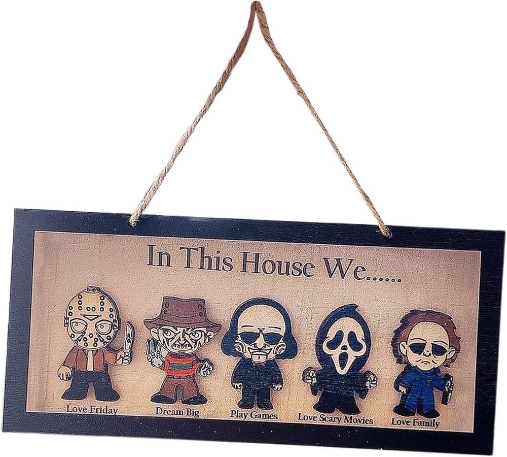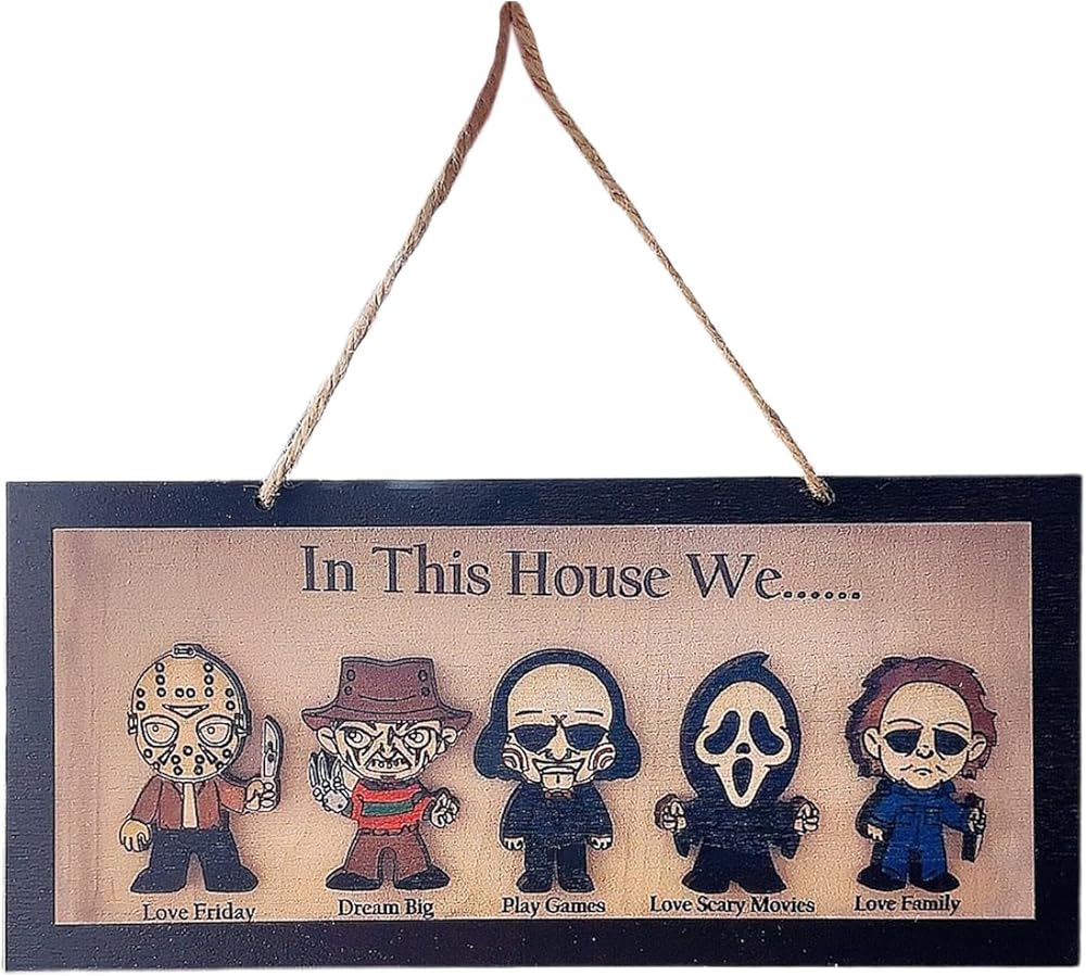 - 【Creative Design】: The wooden sign frame uses movie classic character unique design, so that the decoration is creative and vivid, full of charm, and is a good Halloween decoration