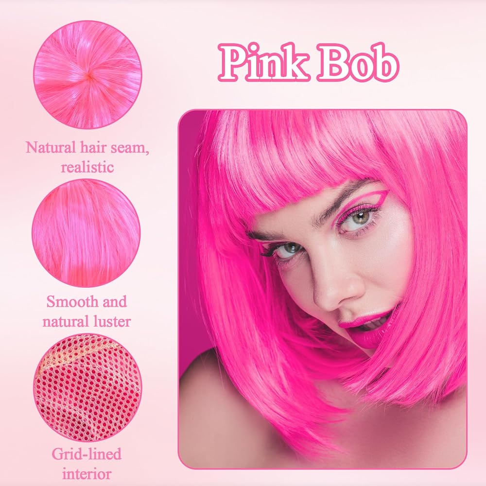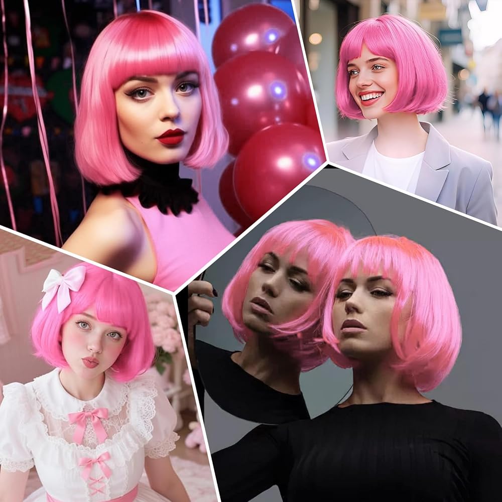 • ✔️Natural and Comfortable Fit: Short Pink Bob Wig is designed to fit comfortably with an adjustable cap that suits different head sizes.