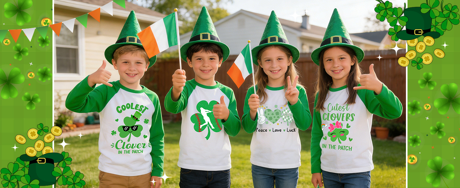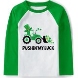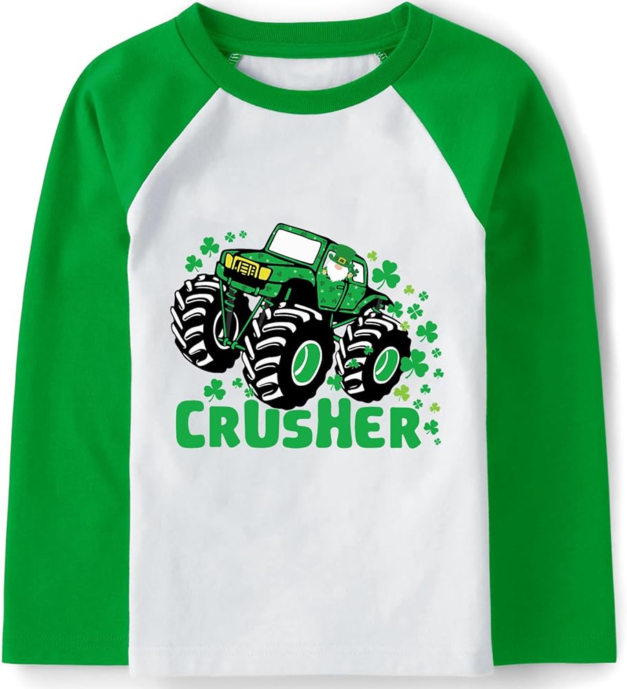 LUCKY & PLAYFUL DESIGN: Celebrate in style with our unique St. Patrick's Day themes! Tractor, baseball with lucky shamrock, "luckiest kid""Coolest Clover In The Patch" prints, each shirt blends Irish luck with kid-approved graphics. The green and white raglan sleeves add a sporty, holiday-ready look that stands out in any crowd.