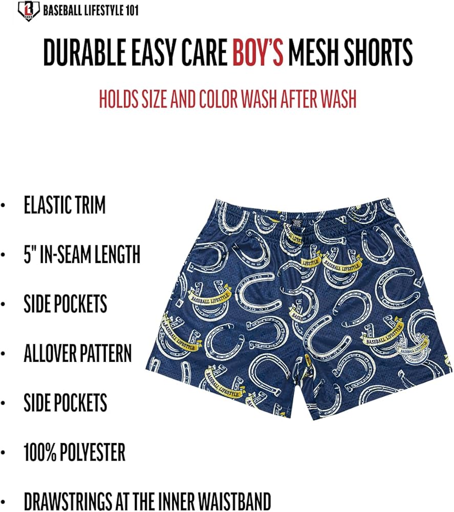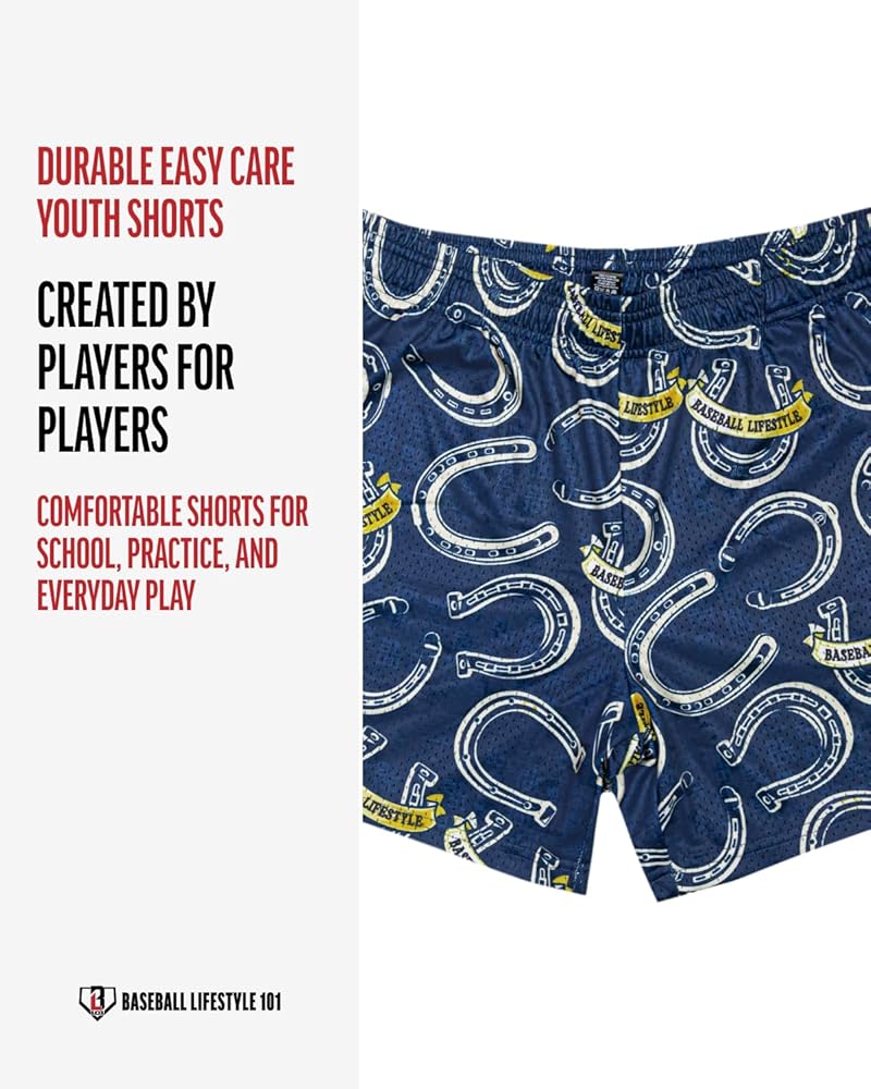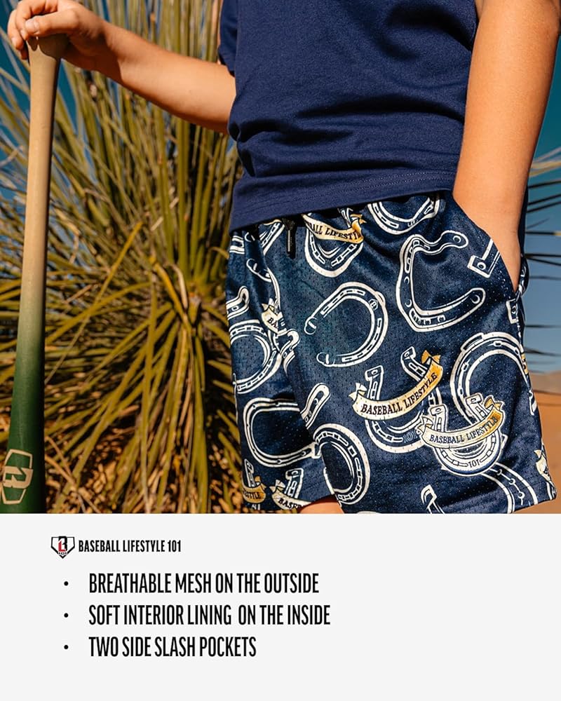 Boys mesh shorts where luck meets hustle. Wild West Windup allover horseshoe print brings wild west energy to bullpen sessions, workouts, and rest days when you are still locked in. Wild west meets the delivery.