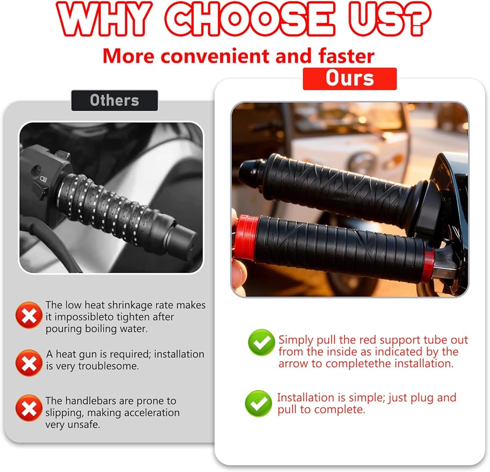 Quick Tool-Free Installation: Designed for easy setup, silicone handlebar grips for motorcycles stretch and slide on effortlessly, creating a tight, vibration-resistant fit without tools in just seconds