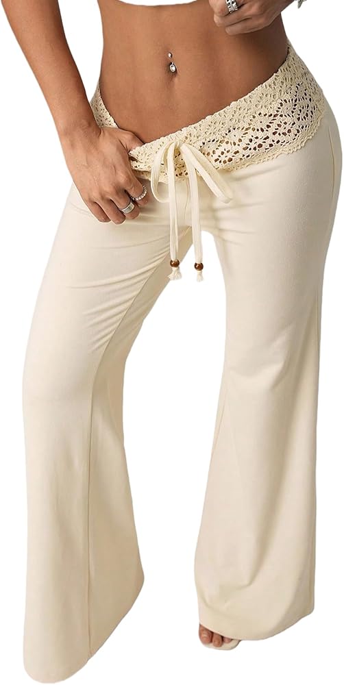 - Features: Unique low rise design with a delicate, handcrafted hollow-out crochet waistband and adjustable drawstring for a boho aesthetic