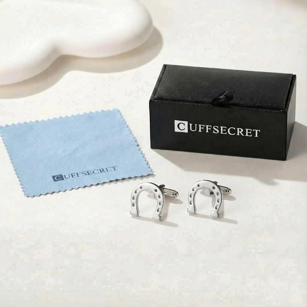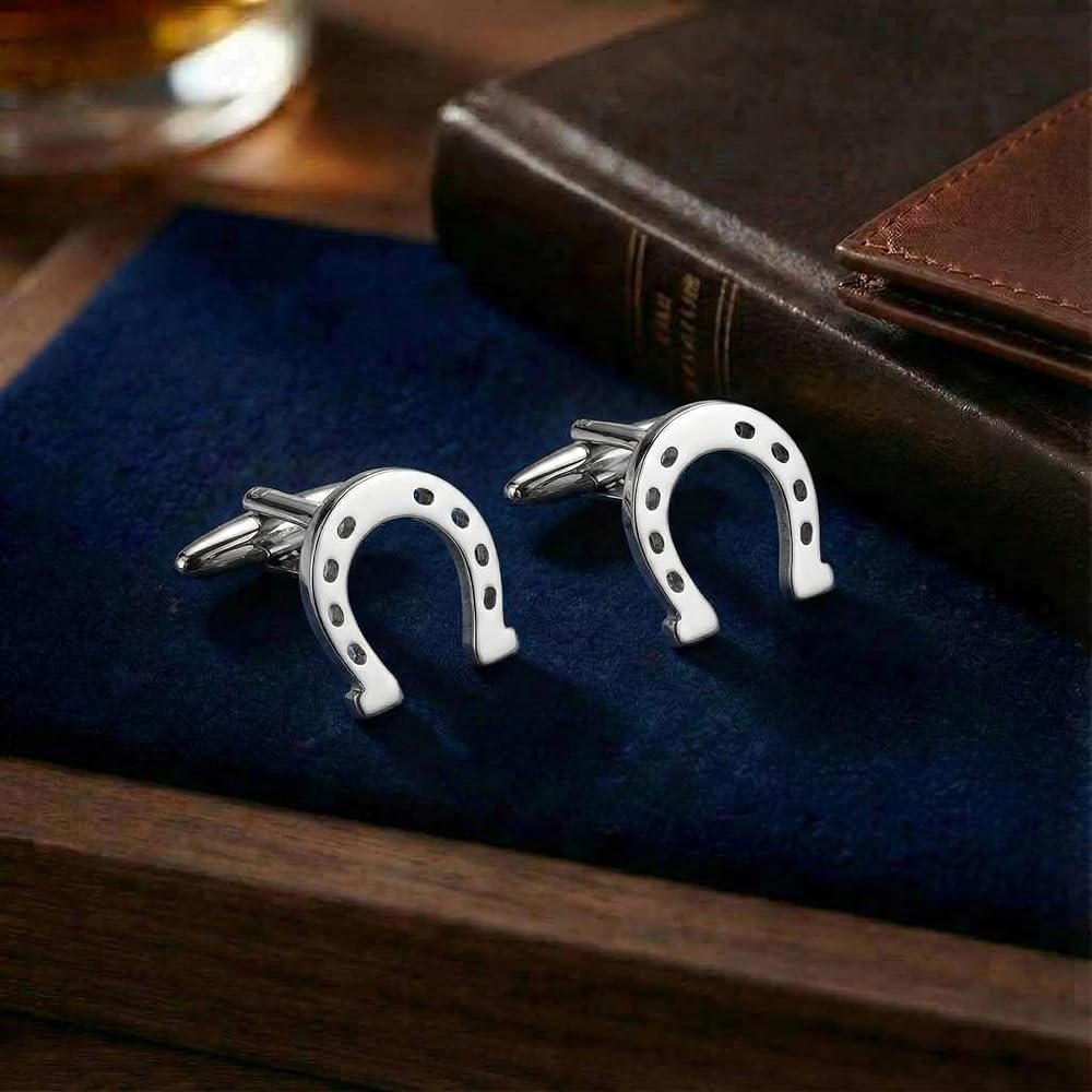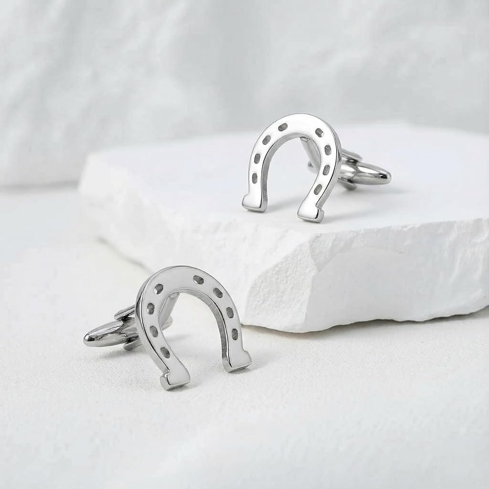 These horseshoe cufflinks blend superstition with elegance, great for horse lovers. Comfortable, secure, and enduring in both finishes.
