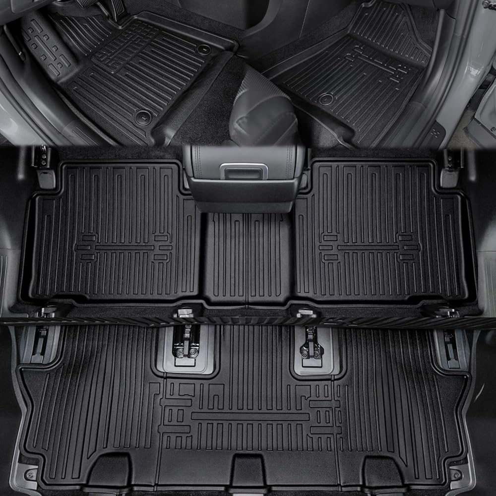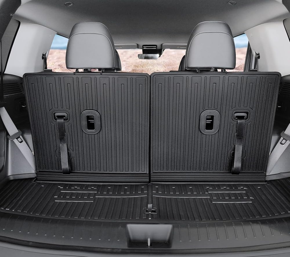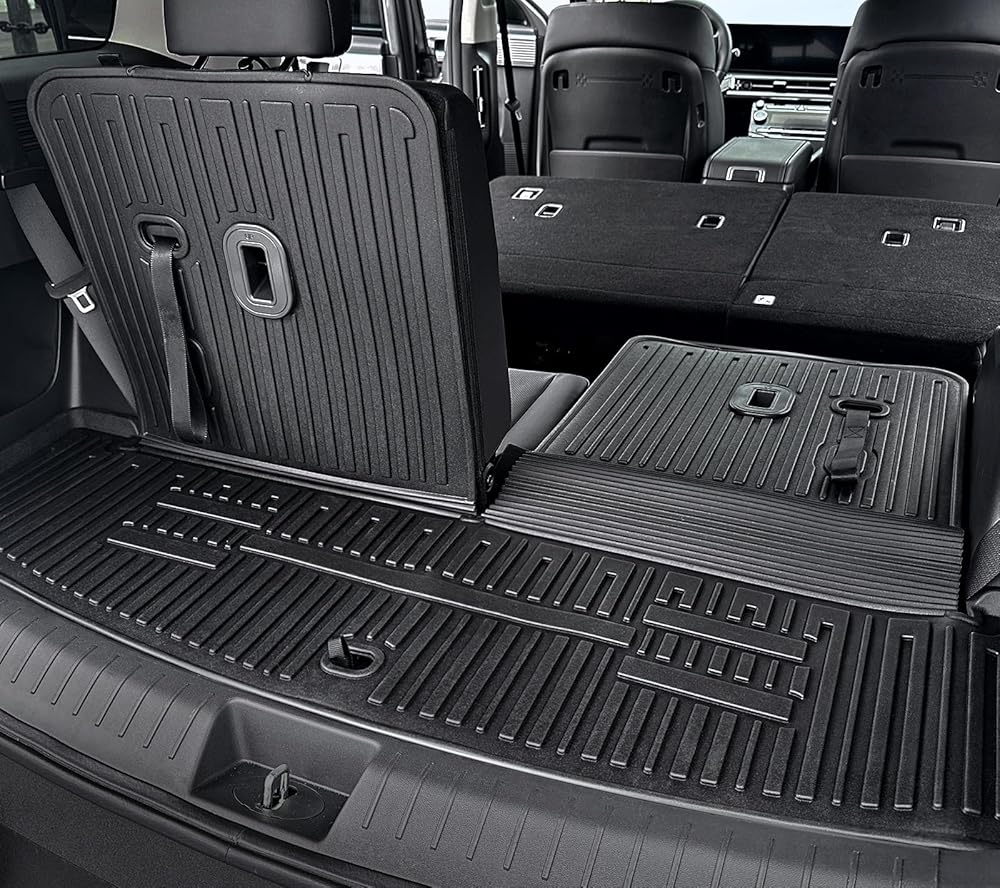 Custom Design: Compatible with 2026 2025 2024 Hyundai Santa Fe SE/ SEL/ XRT/ Limited/ Calligraphy Accessories (Fit Hybrid and Fuel). 3rd-row floor mat has a pre-designated cut line in the middle, allowing it to be cut to fit the vehicle with 7 passengers