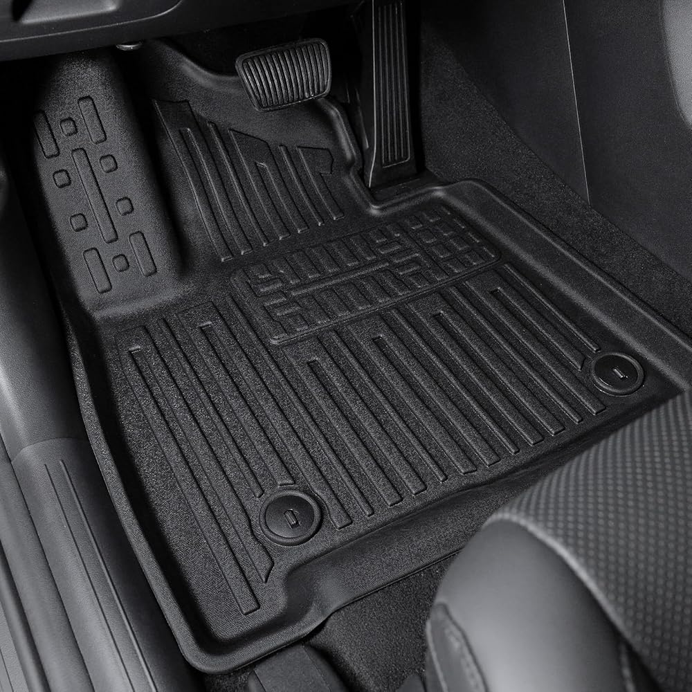Non-Slip Defense: Engineered raised edge trap spills, mud, snow and debris, while reinforced textured patterns reduce foot slippage. Custom clips in car floor mats lock onto original car anchors for zero movemen