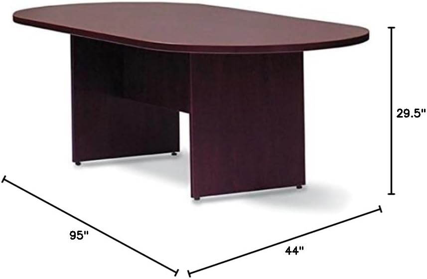 SL9544RS 95” Racetrack Conference Table 95” Racetrack Conference Table/Slab Base 1 3/8” Top Five contemporary finishes include Autumn Walnut (AWL), American Mahogany (AML), American Dark Cherry (ADC), American Espresso (AEL), and Artisan Grey (AGL) all accented with 3mm matching impact-resistant edges. Dimensions 95"w x 44"d x 29.5"h