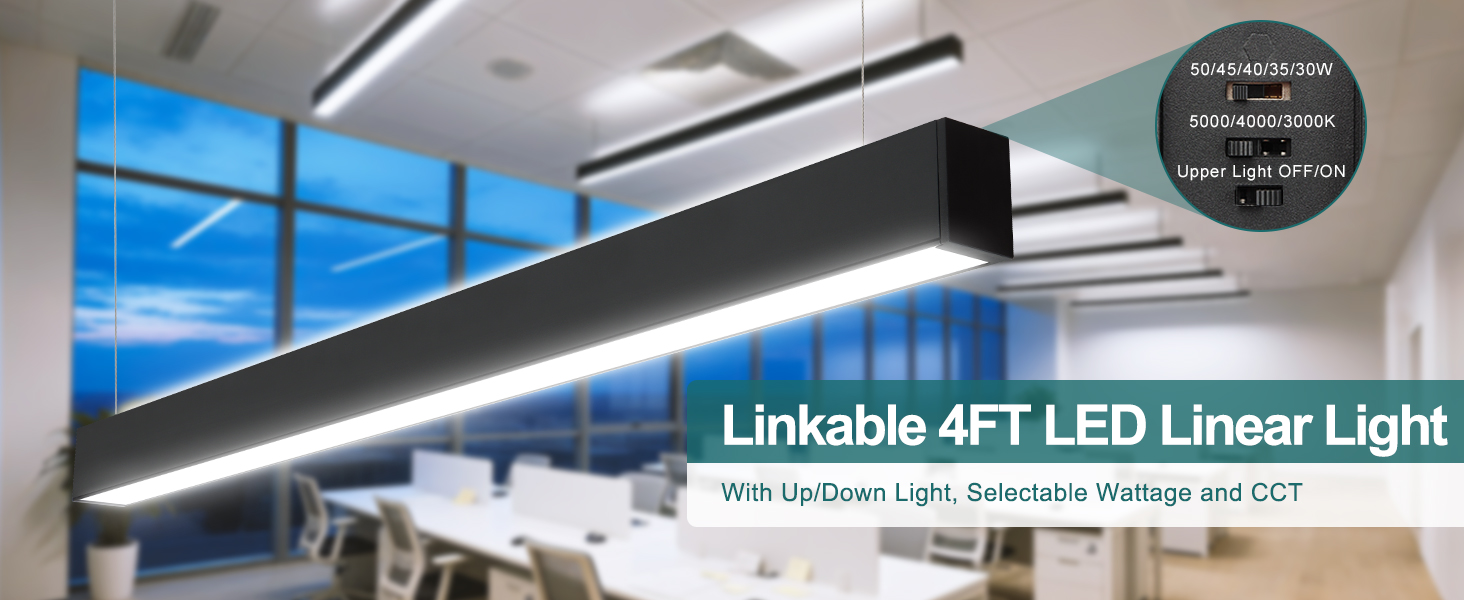 [Up Light ON/OFF] Our 4' linear LED light fixture features optional uplighting. You can choose 100% downward lighting to create focused illumination, or choose the 70% down light + 30% up light combination to brighten the ceiling and upper walls, eliminating the cave effect.
