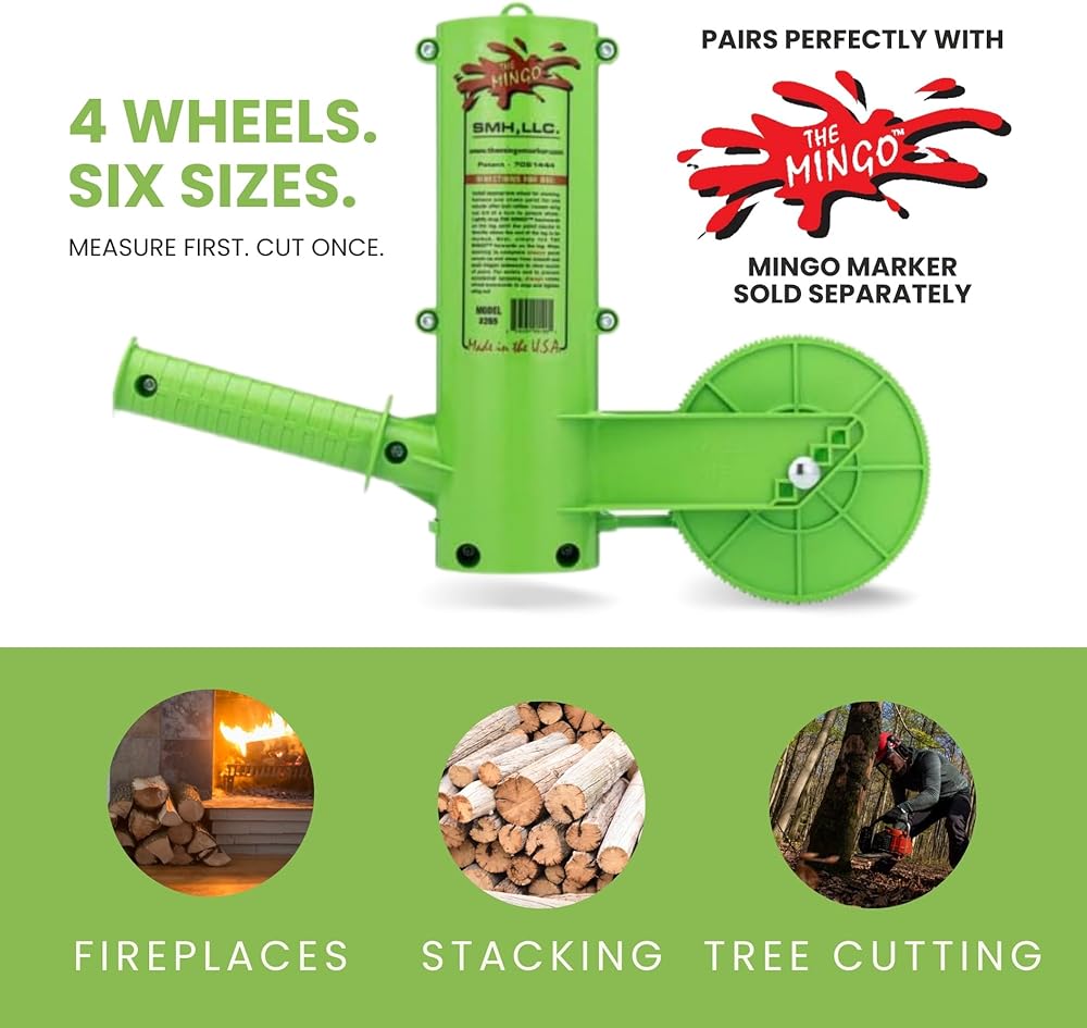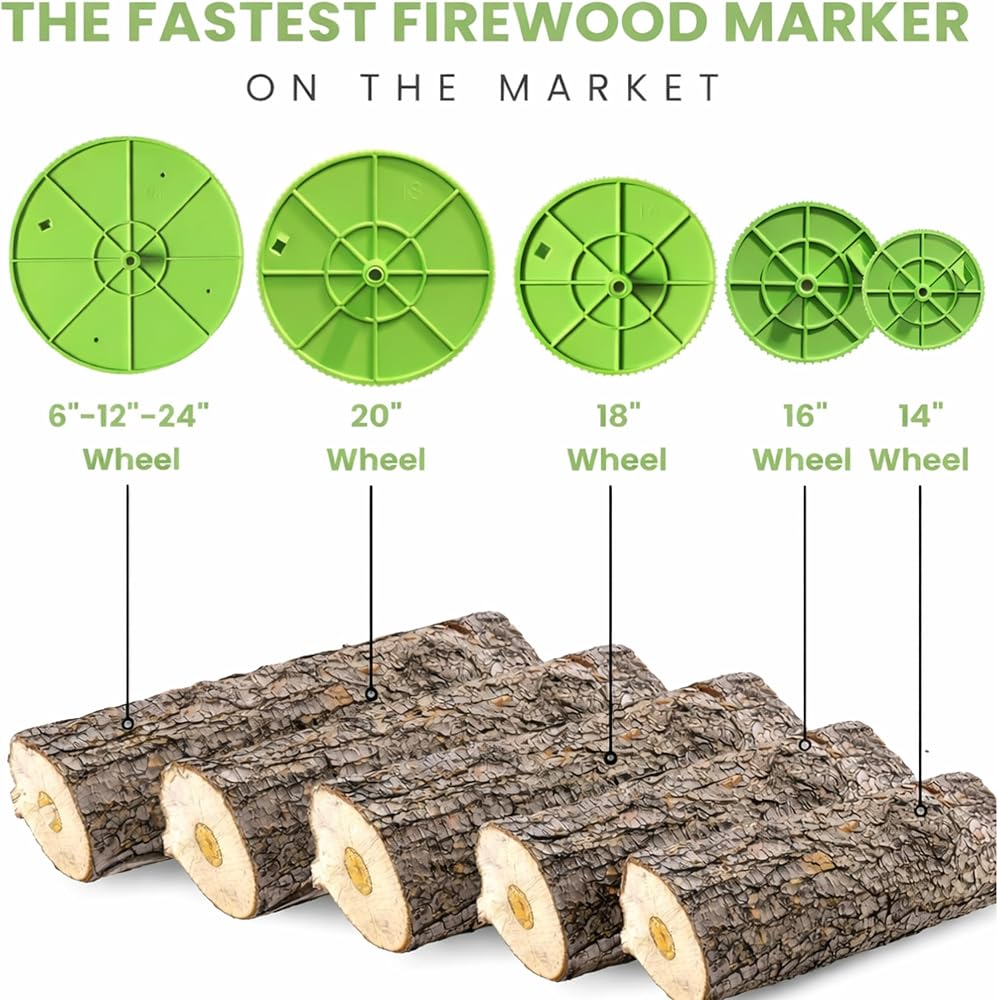 COMPLETE FIREWOOD MARKING KIT: The Mingo Marker comes complete with a mainframe unit featuring all wheels,a 14", 16", 18", & 6"-12"-24" marking wheels. Additionally, a range of accessory wheels for increased versatility and tailored measurements.