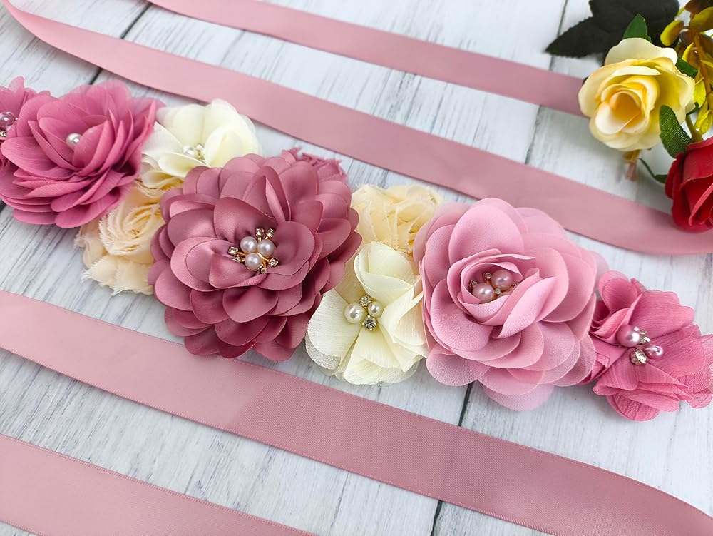 ELEGANT DESIGN: Beautiful dusty pink flower sash belt adds a romantic and feminine touch to any maternity or formal dress ensemble