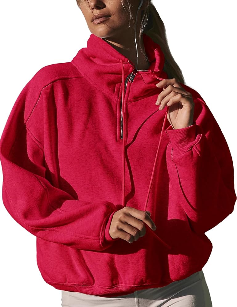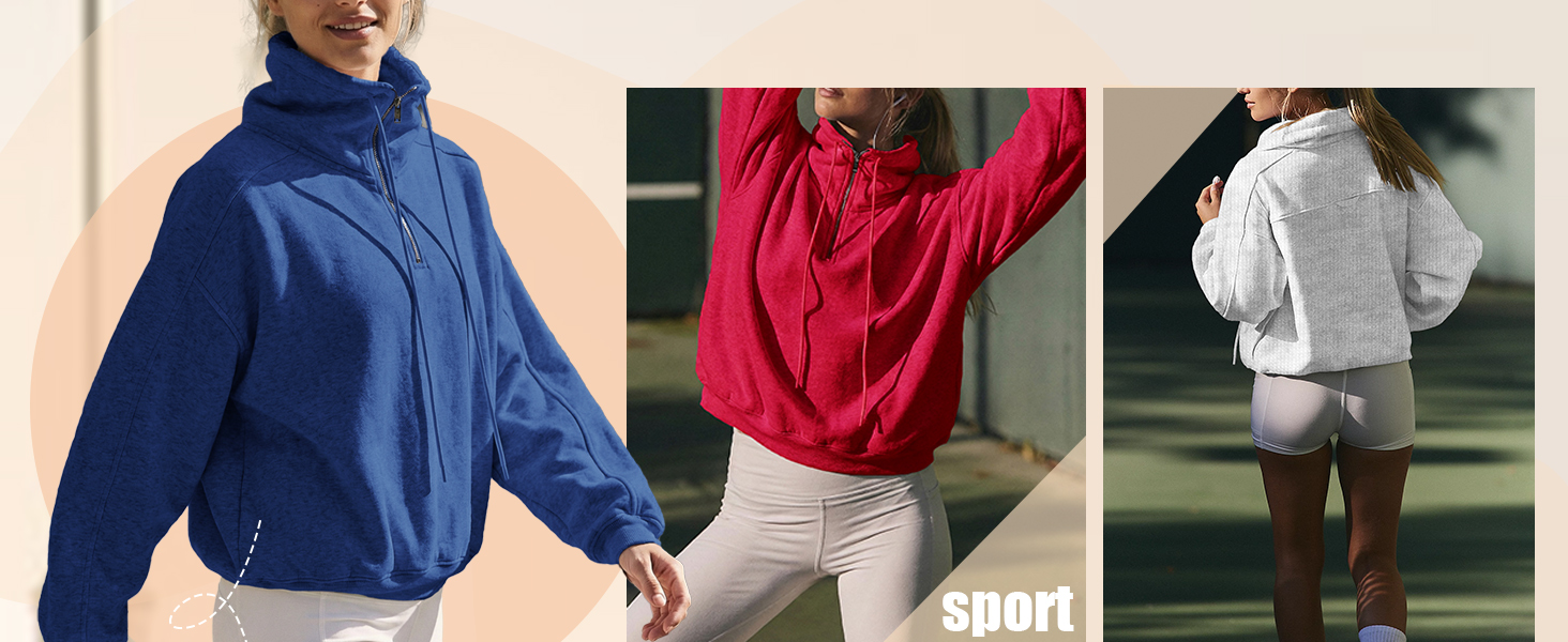 Stylish & Functional Design: Featuring a half-zip mock neck (with smooth metal zipper) lets you adjust your warmth (zip up for wind, down for airflow), and adjustable drawcords, oversized, relaxed, pullover silhouette, drop-shoulder, kanga pocket at front