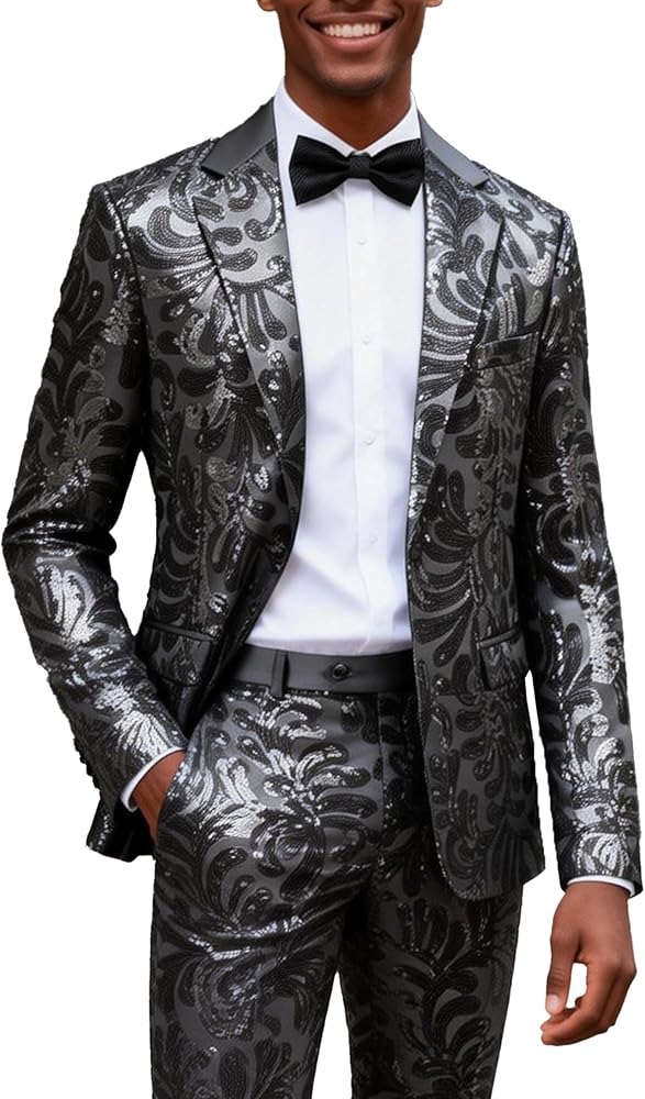 【Matching】Men's suits can be worn alone, or they can be matched with bow tie, scarf, brooch, and shirt to create a formal outfit, or they can be matched with T-shirts, and sneakers can create a casual and fashionable style. The sequin shining effect of the mens 2 piece suit can enhance the wearer's temperament and create a more dazzling atmosphere