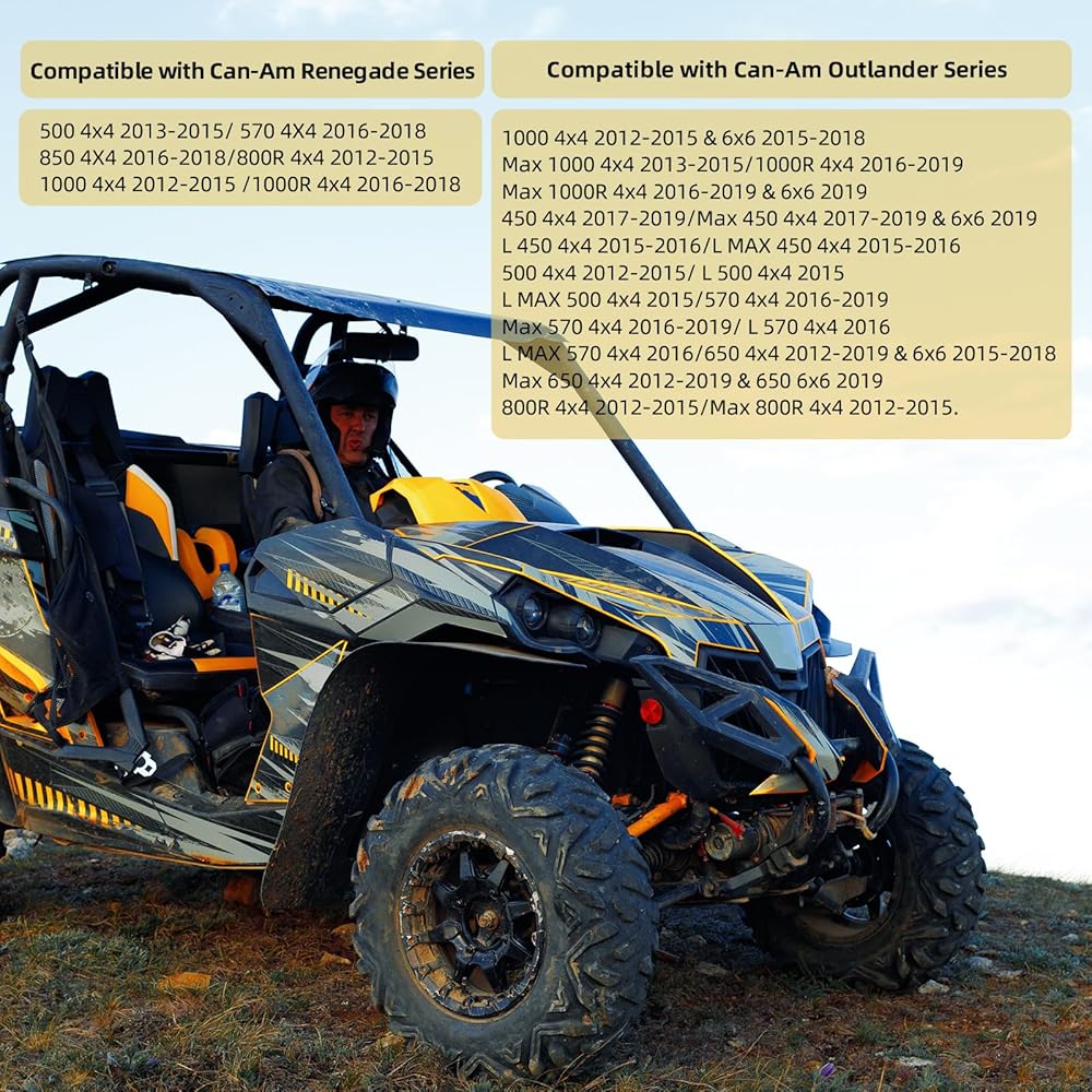 [Compatible with]: Can-Am Outlander 1000 4x4 2012-2015 & 6x6 2015-2018, Max 1000 4x4 2013-2015/1000R 4x4 2016-2019/ Max 1000R 4x4 2016-2019 & 6x6 2019/450 4x4 2017-2019/ Max 450 4x4 2017-2019 & 6x6 2019/L 450 4x4 2015-2016/ L MAX 450 4x4 2015-2016/500 4x4 2012-2015/ L 500 4x4 2015/ L MAX 500 4x4 2015/570 4x4 2016-2019/ Max 570 4x4 2016-2019/ L 570 4x4 2016/ L MAX 570 4x4 2016/650 4x4 2012-2019 & 6x6 2015-2018/ Max 650 4x4 2012-2019 & 650 6x6 2019/800R 4x4 2012-2015/ Max 800R 4x4 2012-2015.