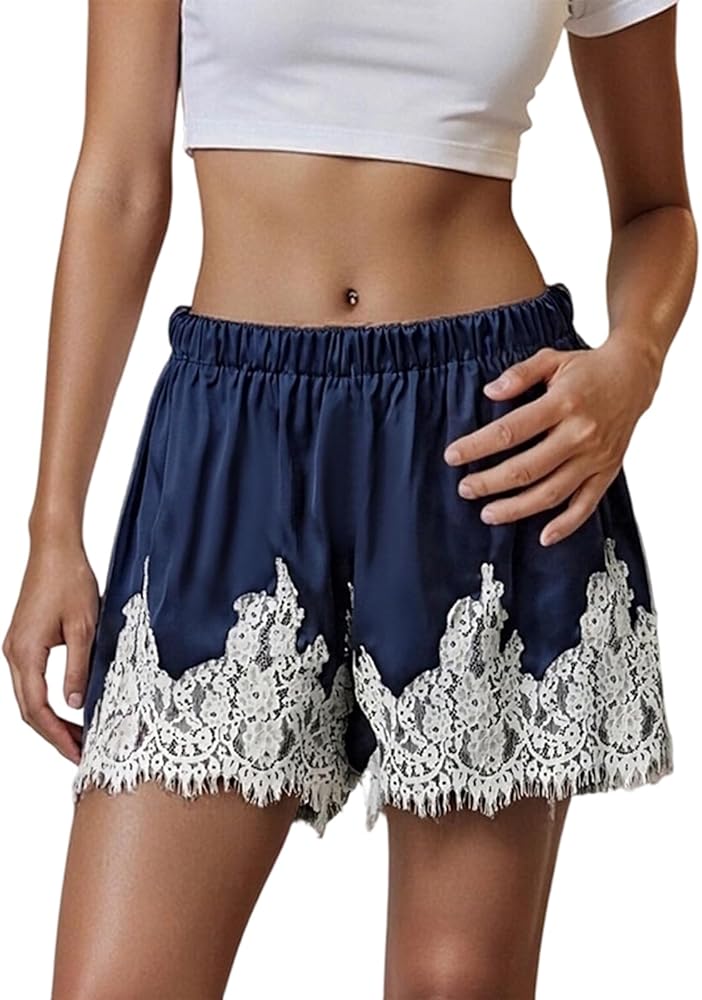 Y2K Satin Lounge Shorts Lace Trim Shorts for Women