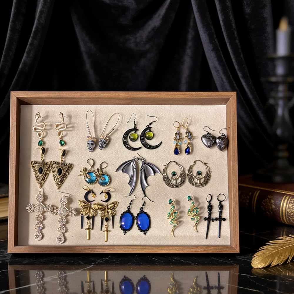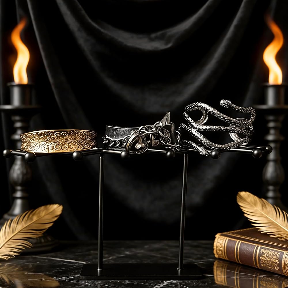Light Gothic & Witchy Aesthetic Symbol Designs:This mystery jewelry jar blends gothic and witchy aesthetics, featuring bold symbolic designs such as skulls, crosses, snakes, dragons, swords, butterflies, stars, moons, and suns. The overall color palette centers on black and gold tones, accented with antique bronze finishes.