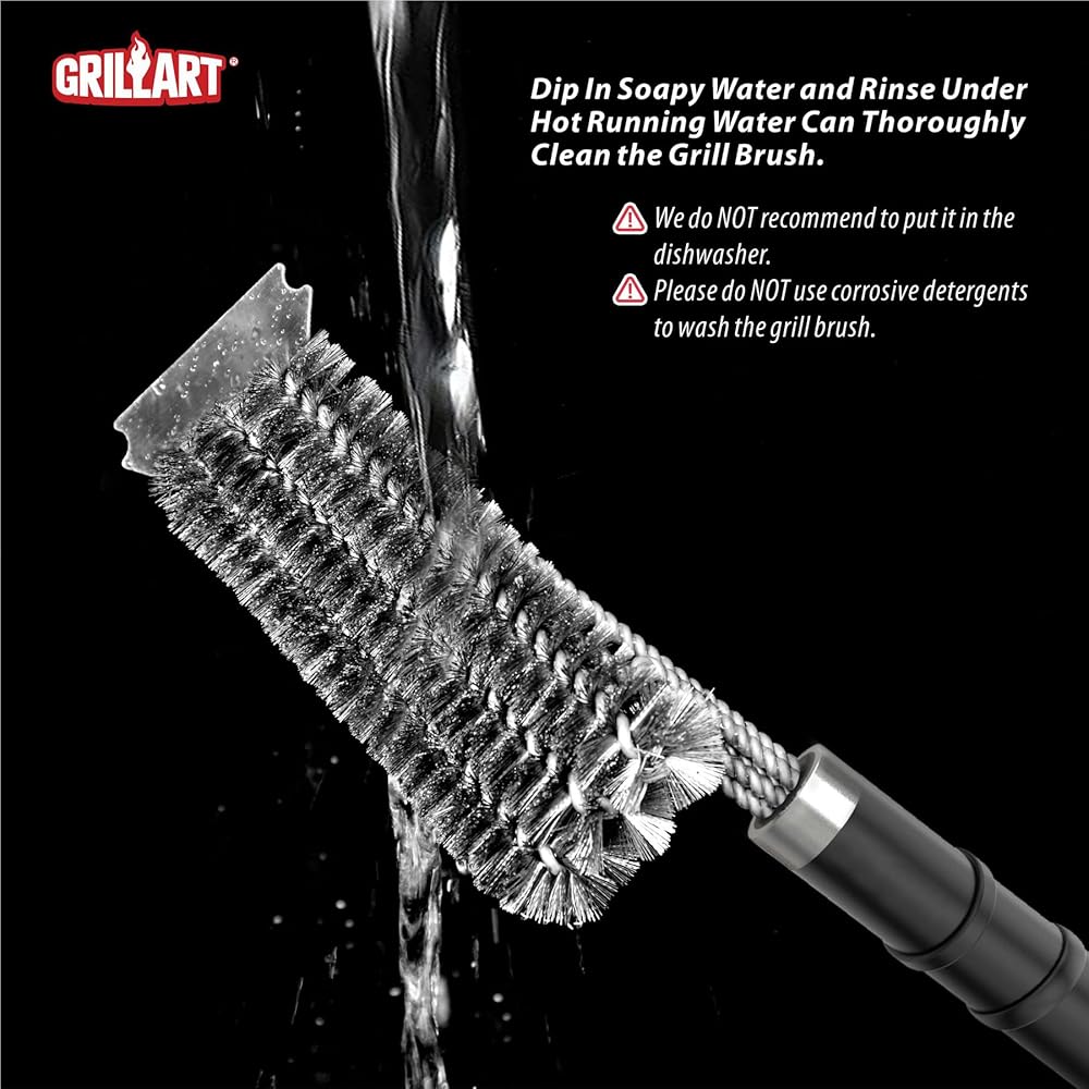 Gentle Reminder: All grill brushes wear out eventually. For the sake of safety and health, after cleaning, use a damp cloth to wipe grill grates, preventing bristles from being left behind.