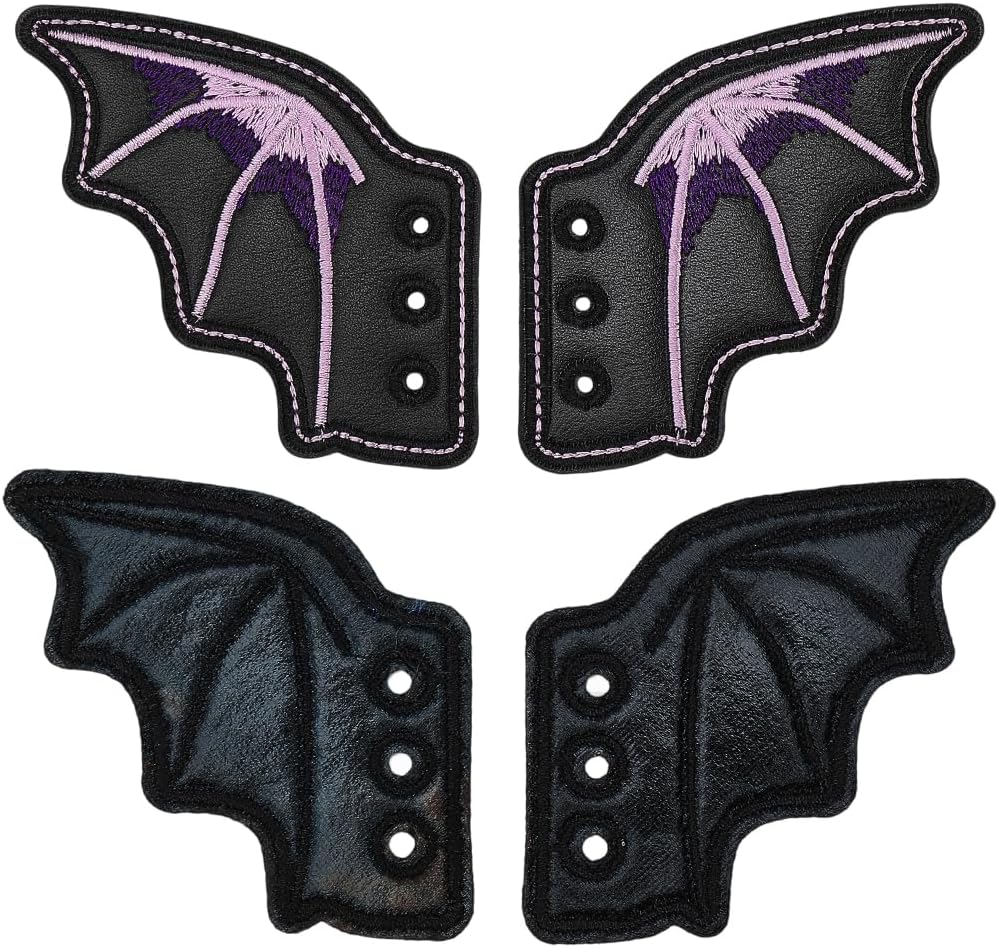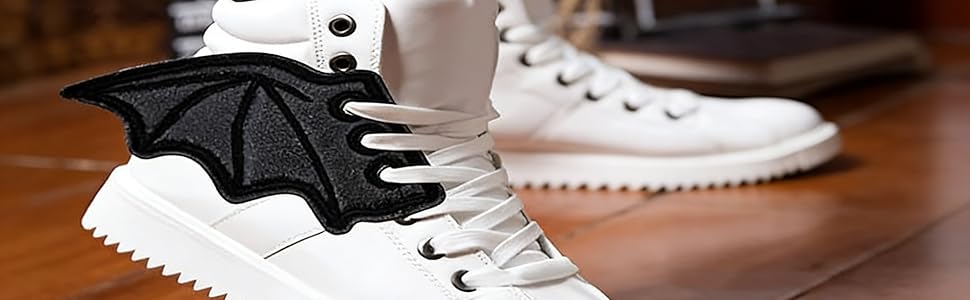 2 Pairs Shoe Wings: 2 pairs of bat-shaped shoe wings in black, each with pre-cut holes that let you lace them directly onto your shoes. Playful bat wing design will make you stand out in the crowd.