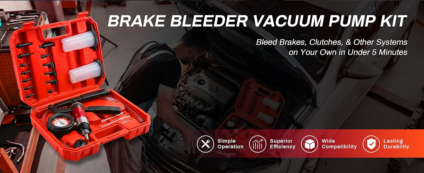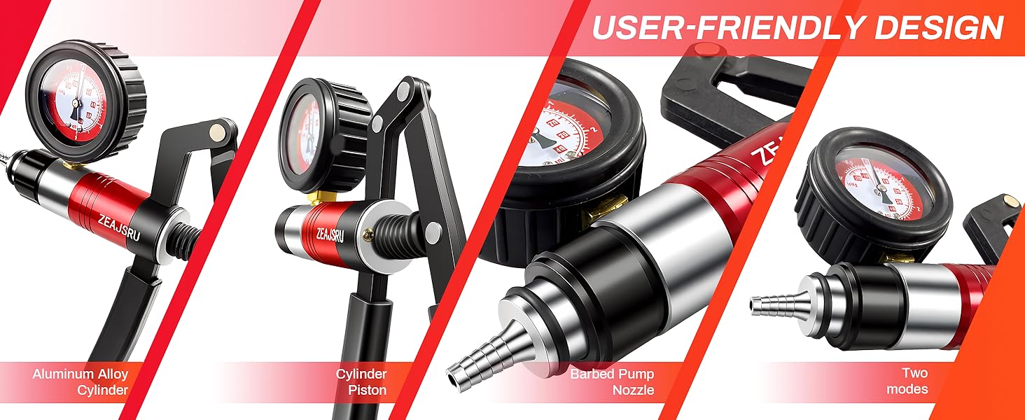 1. All-in-One Vacuum Pump Kit This handheld vacuum pump set is designed for multiple automotive tasks, including brake and clutch bleeding, vacuum system testing, and small-scale fluid extraction. The included gauge provides clear vacuum readings up to 30 inHg, making diagnosis and maintenance easier and more accurate.