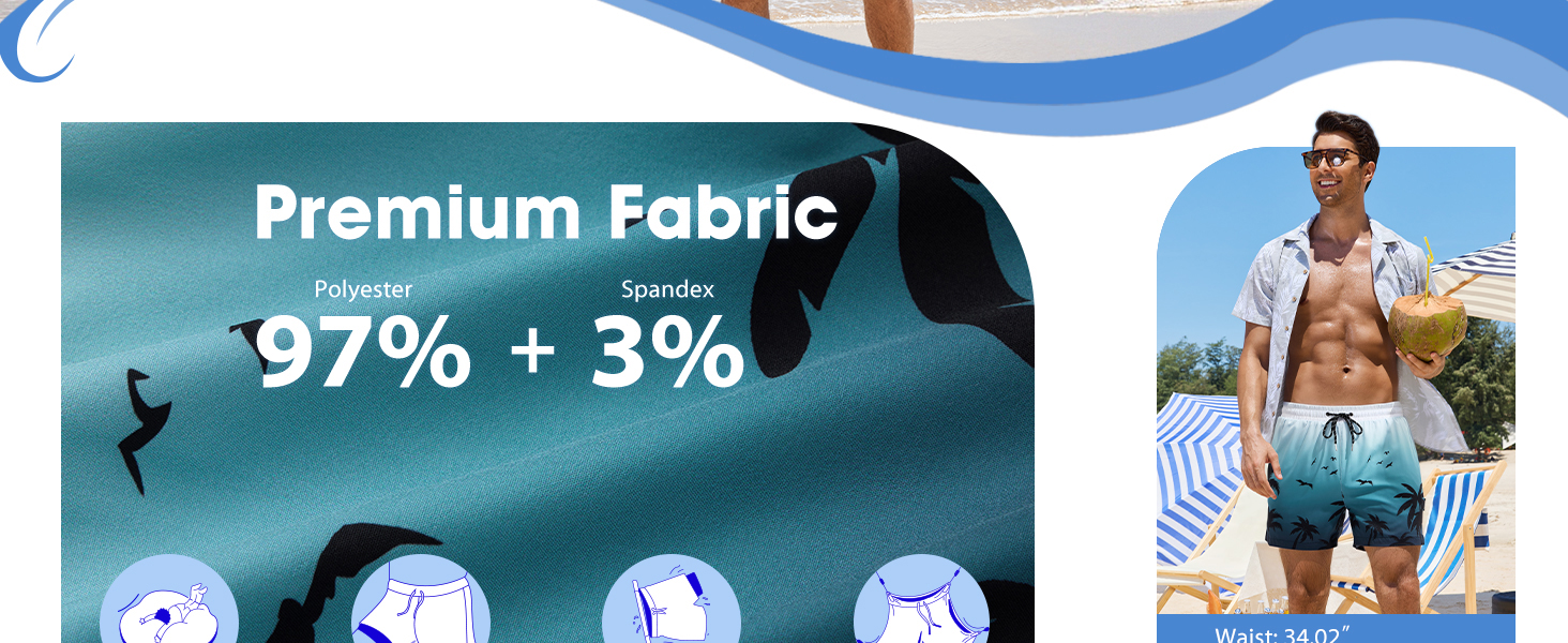 Discover Comfort & Quick-Dry: Mens bathing suit, made with 4-way stretch fabric of 97% Polyester, 3% Spandex, these mens swim trunks feature a soft feel, water resistance, and quick drying performance, bringing comfort and ease to your summer holiday.