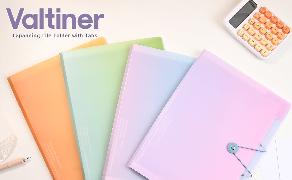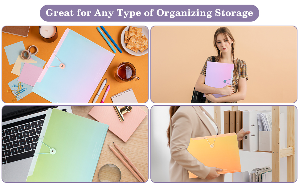 Expanding File Folders: This expanding file folder dimension is 12.60 x 9.45 inches. It is suitable for A4 size paper and standard documents. The shell with aesthetic gradient color gives you a better visual experience
