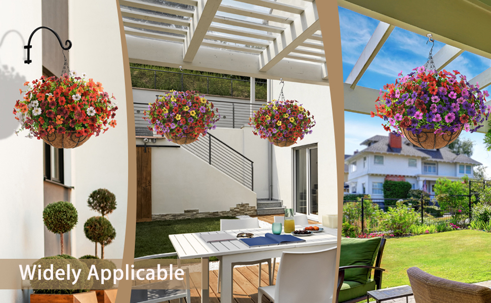 Widely Applicable: These lifelike faux flower designed for both indoors and outdoors decoration, which add gorgeous charm to your home, patio, balcony, garden, front porch, walkways. The fake flowers hanging are also really shine in window sills, garden planters and hanging basket arrangements
