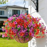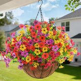 Maintenance Free: These hanging fake flowers are UV-resistant to keep their vibrancy in the sun. Resistant to UV rays and fading, they effortlessly withstand various weather conditions, ensuring long-lasting beauty. With no watering required, the outdoor hanging planter maintain their fullness and captivating appearance throughout the entire season