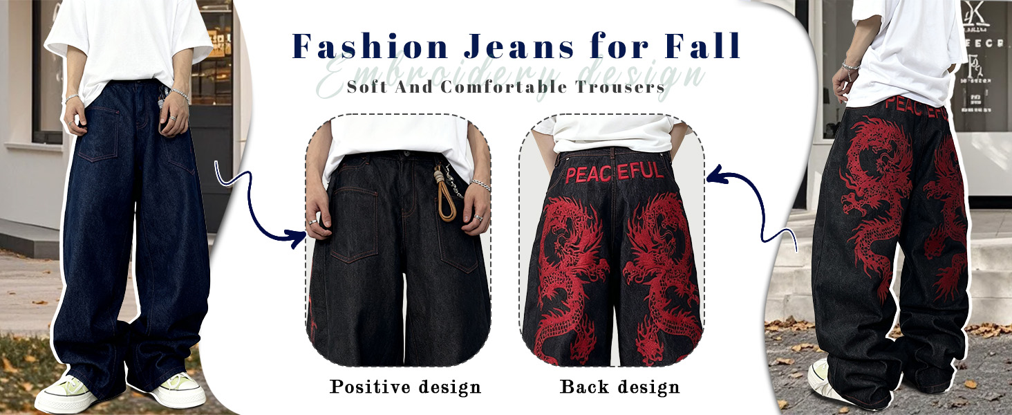 Unique Embroidered Pattern: The inseam of these men's work jeans is made of chafe-free comfort fabric that prevents skin abrasion. The Style one with Back Dragon Pattern and style two with Special Side Pattern are enbroidered.