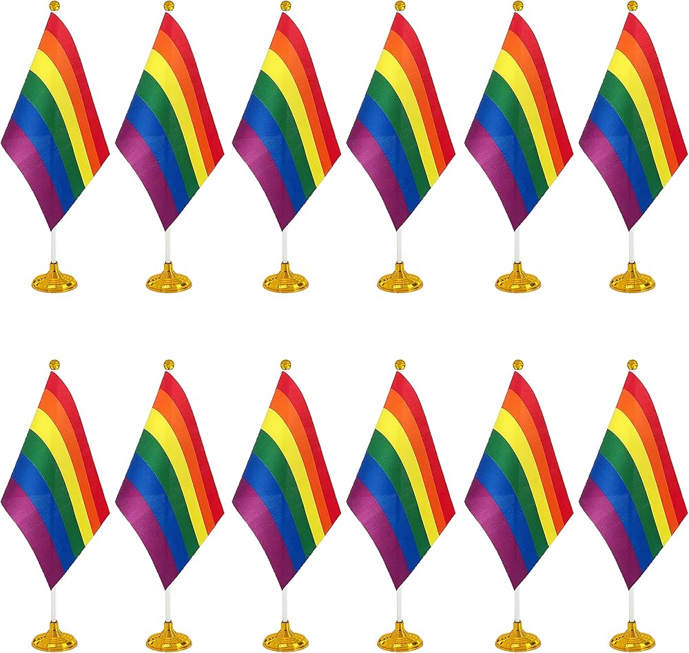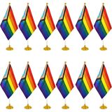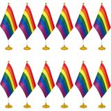 WXTWK 12 Pack Pride Progress Rainbow Desk Flag Small Mini Gay LGBT Table Flags With Stand Base,Rainbow Mardi Gras Festival Events Celebration Decorations
