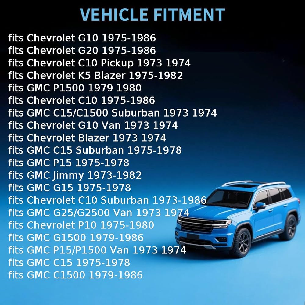 Fits Specific Models1: Suspension Control Arm Shaft Kit fits Chevrolet Blazer 1973-1974 fits Chevrolet C10 1975-1986 fits C10 Pickup 1973-1974 fits Suburban 1973-1986 fits G10 1975-1986 fits G10 Van fits G20 Van fits K5 Blazer 1975-1982 fits P10 1975-1980 fits GMC C15 1975-1978