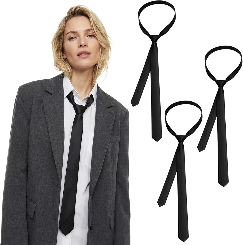 Complete Set:These ties for women includes three identical black skinny ties for multiple wearing options; This skinny black tie collection offers convenient replacement and variety; The set of skinny ties for men and women provides lasting value and styling flexibility