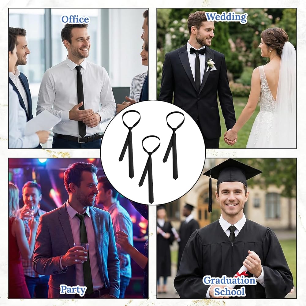 Versatile Styling:These skinny ties for men ideal for professional settings, wedding ceremonies, and formal gatherings; The black tie for women pairs elegantly with dresses and blouses; These skinny black ties coordinate well with suits and dress shirts for complete outfits