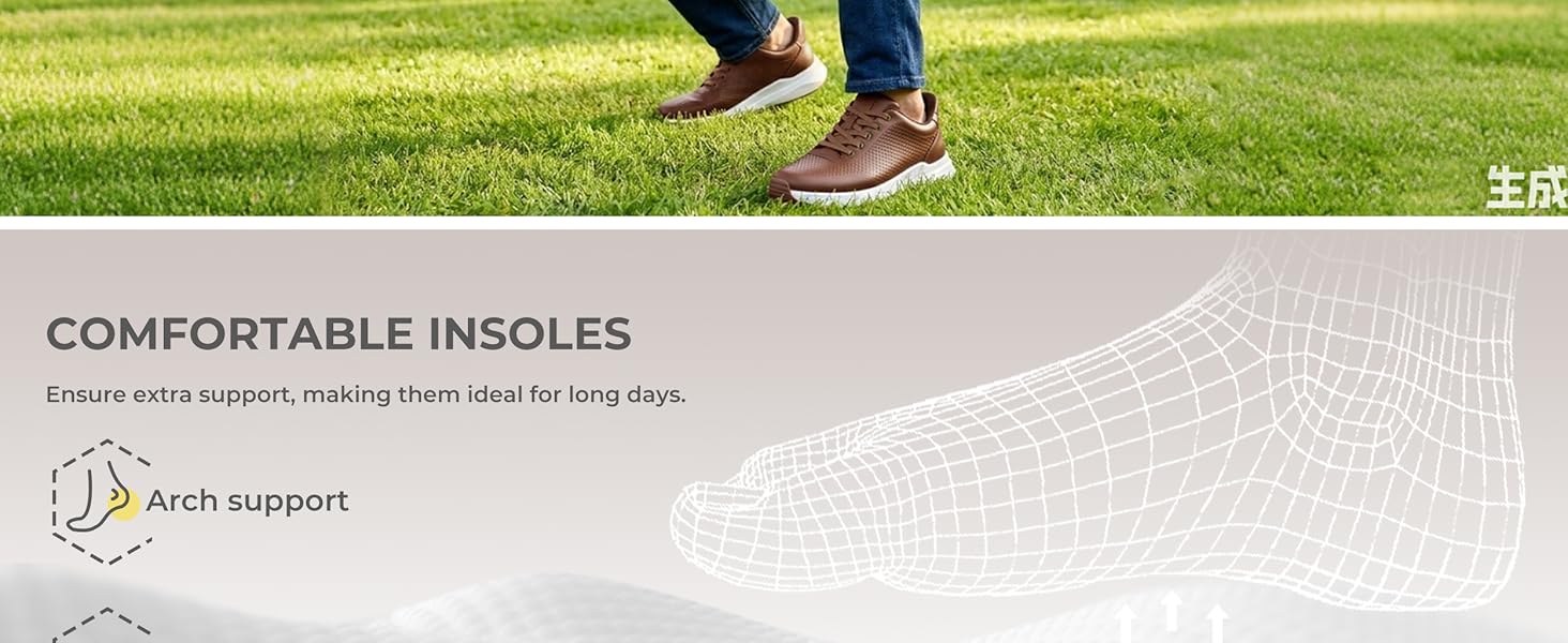 All-Day Arch Support: Built with a arch support insole designed for people on their feet all day. It follows the natural contour of your foot to reduce strain and fight fatigue. Whether you're commuting, running errands, or standing through a long meeting, your feet will feel fresh, supported, and pain-free.