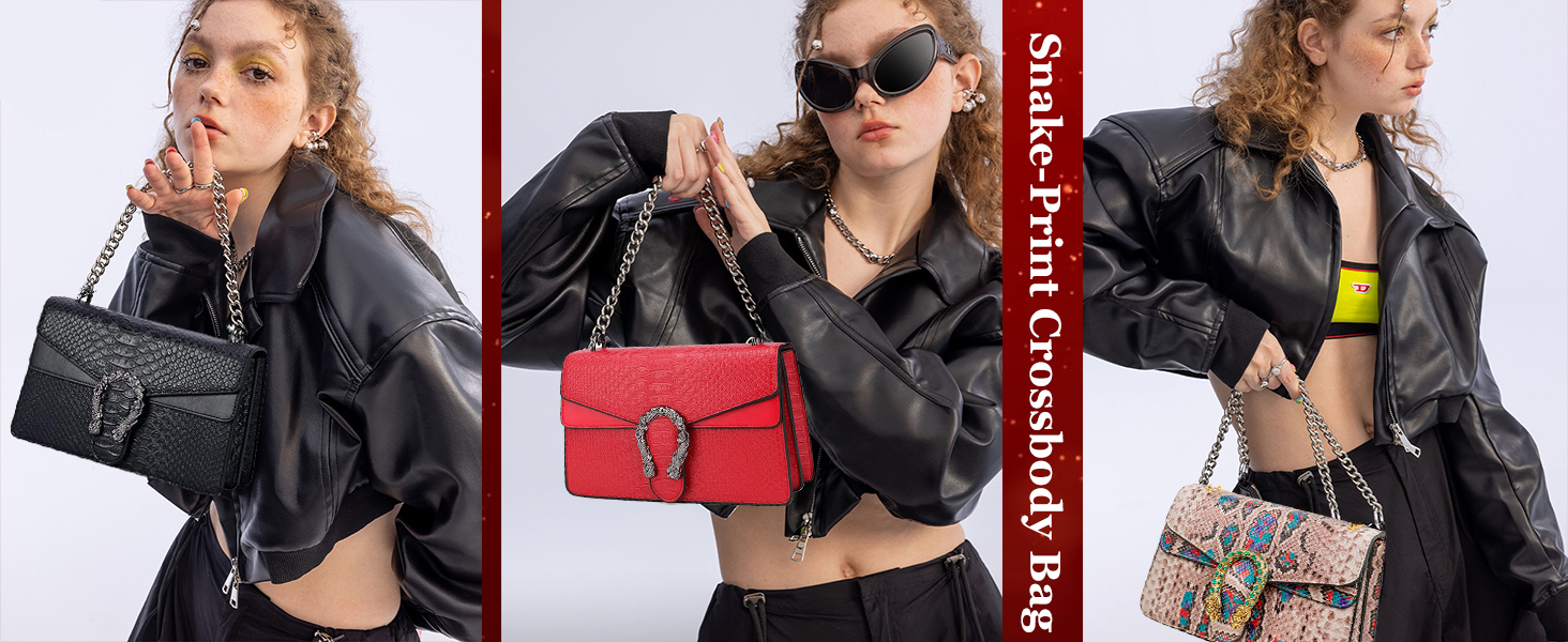 【SIZE STRUCTURE】Snake Printed Leather Messenger Bag (upper width: 9.44in, lower width: 9.84in, height: 6.29in, bottom thickness: 3.74in), the chain can be easily adjusted at will, and it can be worn on one shoulder or crossbody, with a variety of styles for you to choose from