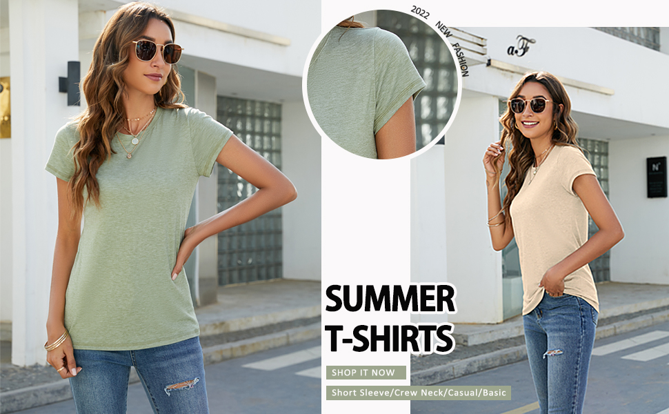 Features: Crew Neck T Shirts,Casual Workout Tops,Soild Color,Basic Tee,Plain Tunic Tops for Leggings,Everyday Wear